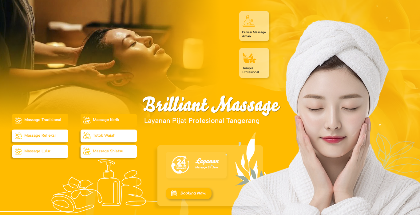 Brilliant Massage adalah layanan jasa pijat profesional di Tangerang yang menghadirkan pengalaman relaksasi berkualitas langsung ke lokasi Anda. Kami melayani pijat home service (ke lokasi) untuk area Tangerang dan sekitarnya, termasuk hotel dan apartemen, dengan mengutamakan kenyamanan, privasi, dan standar profesional.